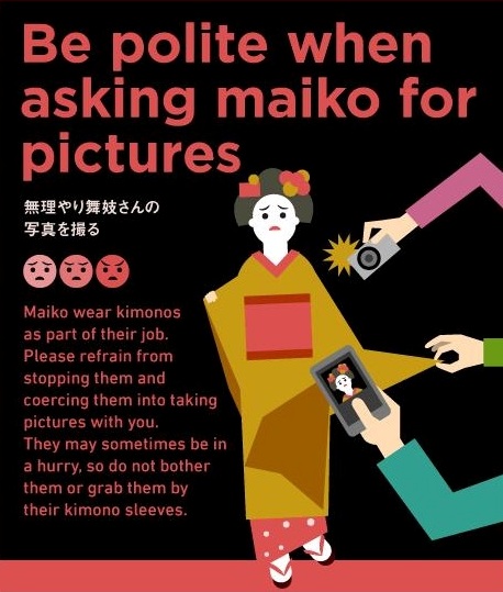 1. Sé educado cuando le pidas una foto a una maiko (aprendiz de geisha). No la molestes o intentes agarrarla de la manga de su kimono para detenerla.