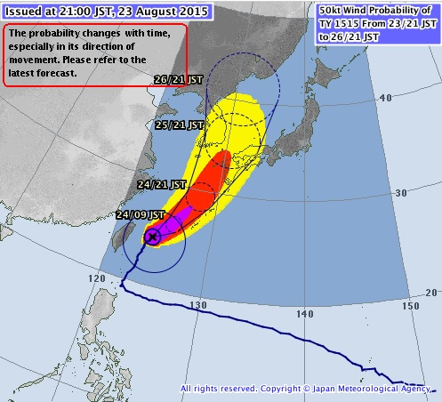 El tifón Nº15 de 2015 en el Pacífico se desplazaba en dirección norte hacia Okinawa generando vientos de hasta 252km/h, según un reporte de la Agencia.