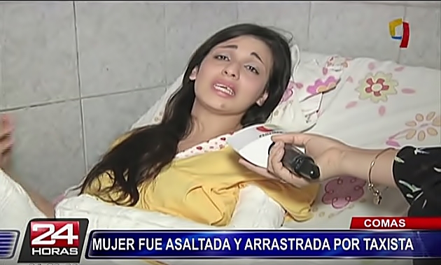El taxista que la trasladó a su casa partió a la carrera tras robarle su cartera que contenía dos celulares y dinero en efectivo y la arrastró varios metros ocasionándole la fractura del brazo izquierdo, un corte en el abdomen, golpes en varias partes del cuerpo y dos dientes rotos, informó el noticiero 24 Horas.