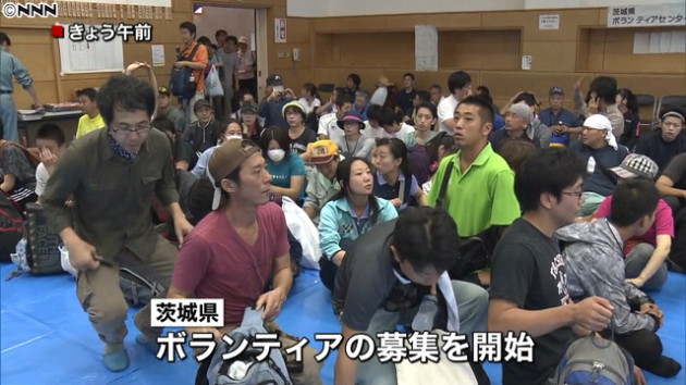 Japón se pone manos a la obra y demuestra una vez más su solidaridad en los momentos más duros. Más de un centenar de personas se presentaron hoy en el Ishige Taikukn de la ciudad de Joso, en Ibaraki, como voluntarios para limpieza y recuperación de casas inundadas.