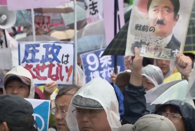 Un hombre de 73 años que todos los días se manifiesta contra la legislación delante del Parlamento declaró que es inaceptable que se vote una ley que va contra la Constitución de Japón, que en su artículo 9 establece que el país renuncia a la guerra como derecho soberano de la nación y le impide recurrir a las armas para resolver disputas internacionales.