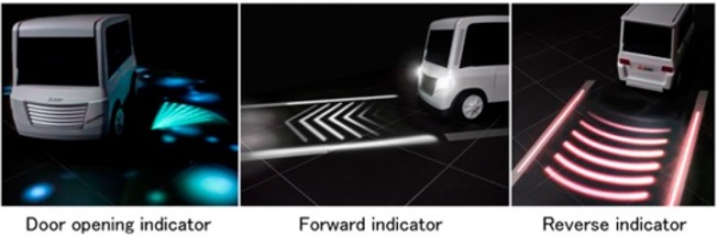 Mitsubishi Electric anunció un innovador sistema que ilumina la zona a su alrededor en la noche para informar a los peatones y otros conductores de la trayectoria prevista del vehículo.