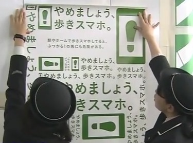 El lunes los pasajeros encontraron en las estaciones afiches con un mensaje contundente: “Deje de usar su smartphone mientras camina». Además, empleados de JR East distribuyeron paquetes de tissue con mensajes en los que pedían a los usuarios que se comportaran debidamente para no poner en riesgo su integridad ni la del resto.