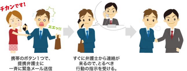 ¿Cómo funciona? Los beneficiarios del seguro registran su número telefónico en la empresa. En caso de ser acusados injustamente de ser un chikan, pueden enviar un correo electrónico apretando un solo botón. Una vez que llega el mensaje, un abogado se comunicará con él y le asesorará para hacer frente a la situación e impedir que, por ejemplo, de manera involuntaria e incorrecta se incrimine a sí mismo.