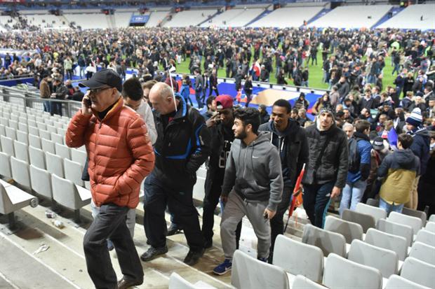 El presidente Hollande fue retirado del estadio mientras el público era invitado a refugiarse en la cancha. Poco después el recinto fue evacuado y cerrado.