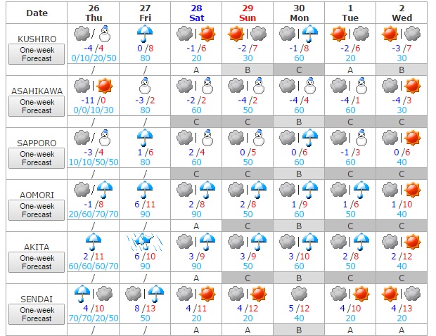 Vea aquí cuál es la previsión del tiempo entre 26 de noviembre y el 2 de diciembre, según la Agencia Meteorológica de Japón.