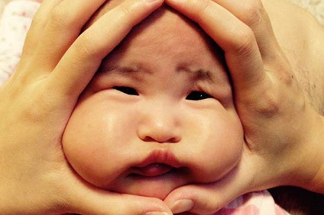 Colocar los pulgares bajo la barbilla de un pequeño y usar las palmas para aplastar su rostro con el fin de darle una forma triangular, semejante al onigiri, y fotografiarlo se ha convertido en tendencia (#RiceBallBabies).