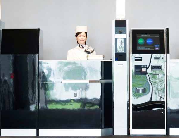 Este hotel, que abrió sus puertas en julio de 2015, utiliza una versión personalizada de los robots Actroid desarrollados por la empresa Kokoro, que ha abastecido de robots interactivos a numerosas salas de exposiciones y museos.