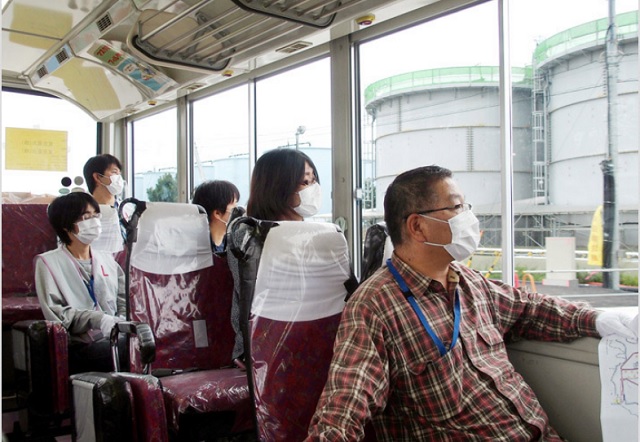 En noviembre pasado, por ejemplo, 19 estudiantes universitarios participaron en un tour a bordo de un autobús que pasó por grandes tanques de almacenamiento de agua contaminada y un enorme equipo conectado a un edificio del reactor para extraer combustible nuclear. A lo largo del recorrido, los jóvenes vieron a trabajadores con ropa y mascarillas de protección en plena labor.