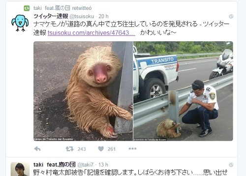 Los japoneses han quedado fascinados por el oso perezoso que fue rescatado por la policía de carreteras de Ecuador cuando el pasado 22 de enero intentaba cruzar un anillo vial en la localidad de Quevedo.