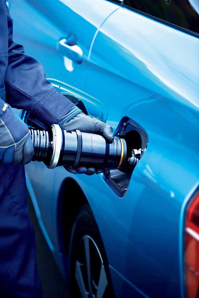 Los vehículos con pila de hidrógeno, que no emiten gases de efecto invernadero, funcionan con electricidad generada por el hidrógeno que reacciona con el oxígeno.