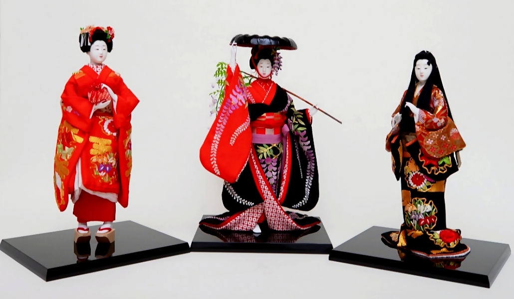 Muñecos que representan a actores de teatros de kabuki, otros realizando tareas cotidianas, como la interpretación de instrumentos musicales típicos de Japón, llevando agua o flores, e incluso representaciones de deidades también son parte de la muestra.