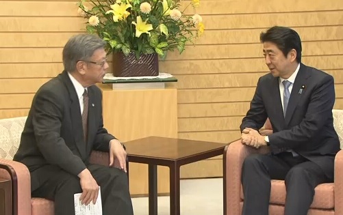 Abe le dijo a Onaga que el gobierno central continuará las conversaciones de manera amistosa con Okinawa sobre la reubicación de la base de Futenma, informó la NHK.