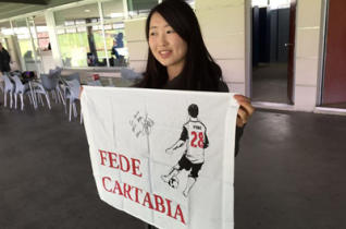 Fede Cartabia, centrocampista argentino del Deportivo de La Coruña, levanta pasión en Japón y ha atraído hasta la ciudad deportiva del club gallego a una aficionada asiática, Ayaka, que ya había conseguido el pantalón con el que jugó el futbolista ante el Málaga y hoy obtuvo un autógrafo de su ídolo.