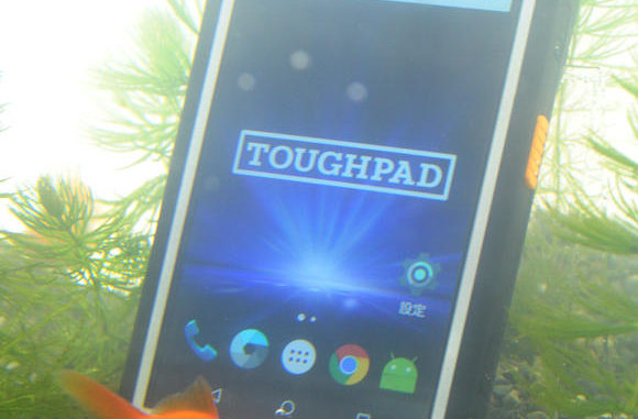 El gigante nipón mostró ante la prensa cómo su nuevo Toughpad puede sumergirse en el agua como si fuera un pez y aguantar una caída desde una altura de 1,8 metros.