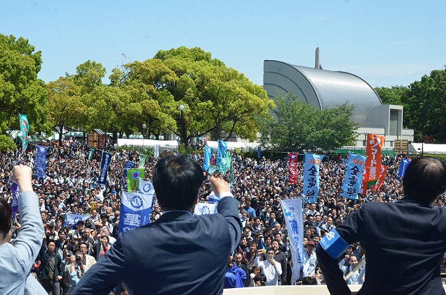 La manifestación fue convocada por la más grande agrupación sindical de Japón, Rengo, con motivo del Día del Trabajo, informó la NHK.