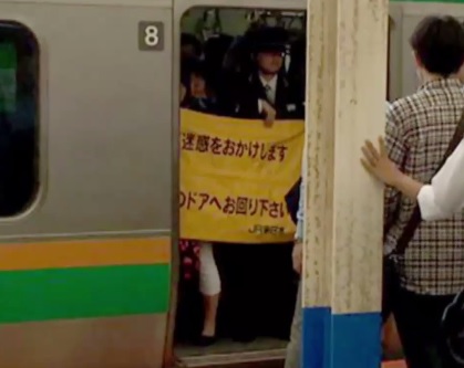 El operador East Japan Railway decidió poner una sábana a lo largo de la puerta y a un empleado para resguardar a los pasajeros.