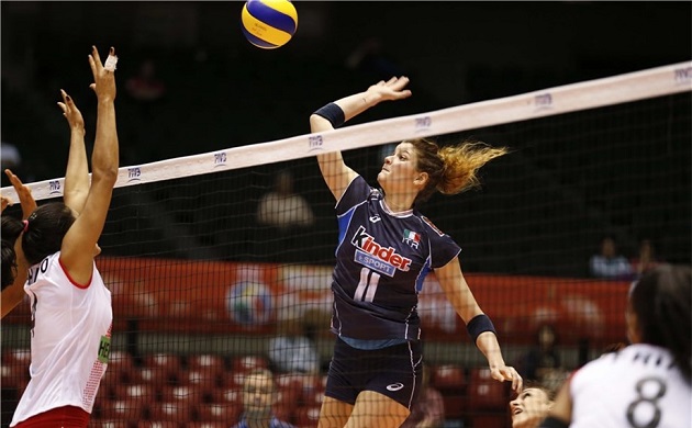 La capitana peruana Mirtha Uribe mostró la fiabilidad de siempre, pero el equipo en su conjunto no pudo contener los poderosos ataques de las italianas Paola Egnou (17 años) y de Miriam Sylla (20 años). Las dos fueron una pesadilla para la defensa inca que perdió el set 25-16.