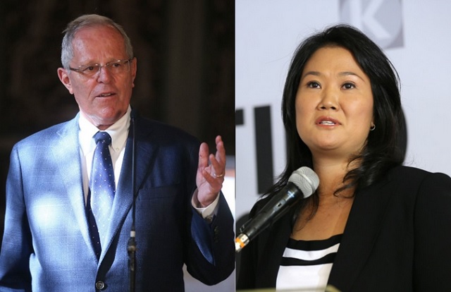 Minutos antes de la presentación, se conoció el último simulacro de votación que reveló que Fujimori está adelante con el 52,6 % de votos válidos, mientras que Kuczynski tiene 47,4 %, en un estudio de Ipsos. (EFE)