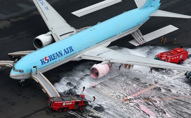 Poco después del mediodía de hoy unos 300 pasajeros fueron evacuados de un avión de pasajeros de Korean Air en una pista de despegue en el aeropuerto de Haneda en Tokio a causa de un incendio en el motor izquierdo.