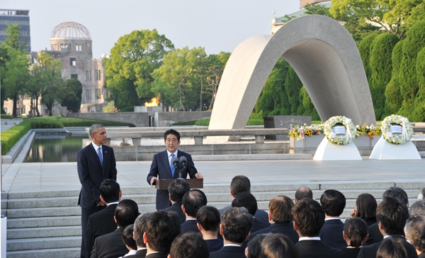 Allí, participó en una ceremonia en el Parque de la Paz de la ciudad junto a Abe, donde pidió que la tragedia nunca se olvide, y realizó una ofrenda floral ante el cenotafio en memoria a los fallecidos por el ataque, en presencia de siete «hibakusha», como se conoce en Japón a los supervivientes de la bomba atómica.