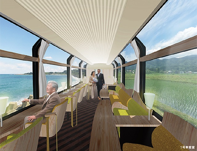 En vez de paredes, ventanas panorámicas para tener una mejor vista del paisaje. Los pasajeros de un nuevo tren en Niigata, el Echigo Tokimeki Resort Setsugekka, pueden hacer de cada viaje un recorrido turístico.