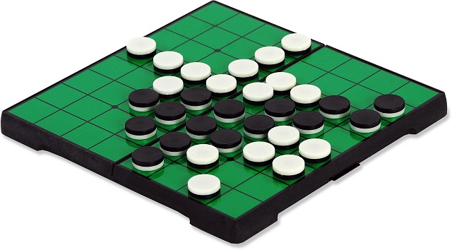 Otelo es un popular juego de estrategia en el que participan dos personas, una con fichas blancas y otra con negras, y gana el que acumula más piezas de su color cuando el tablero de 8×8 se llena.