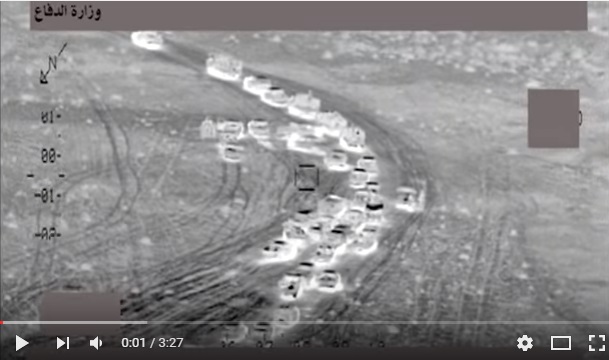 La imagen, que subida el viernes pasado a YouTube por el Ministerio de Defensa iraquí, muestra una línea de vehículos que se desplaza por el desierto antes de ser atacado desde el aire por misiles y ametralladoras.