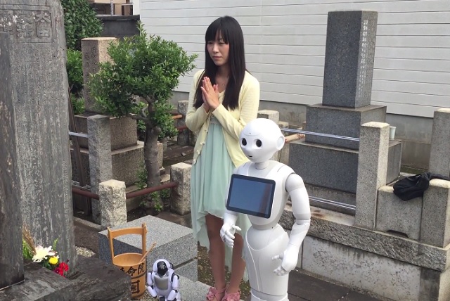 Ella misma ha diseñado la aplicación que permite a Pepper inclinarse y juntar sus manos, como hacen los japoneses cuando presentan sus respetos ante los «kami» (los dioses de la religión sintoísta), que controla a través de un ordenador.