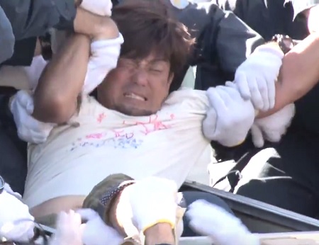 El miembro de la asamblea municipal de Higashi, Masatsugu Isa, declaró que era la primera vez que un número tan elevado de policías antidisturbios llegaba a la zona. “Ellos están aquí para aplastar la voluntad de la gente de Okinawa mediante el ejercicio de todo el poder que tienen», dijo.