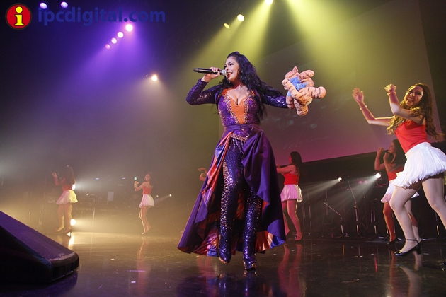 Le lanzaron un canzoncillo, rosado y con rayas negras, de varón, del que la cantante ni se enteró porque cayó entre los fotógrafos del ala derecha. Una mujer le alcanzó papel tissue para que se seque la cara, otra le dio un osito de peluche muy bonito y una persona pugnó con la seguridad para hacerle llegar un elegante pañuelo de encaje rojo. No pudo.
