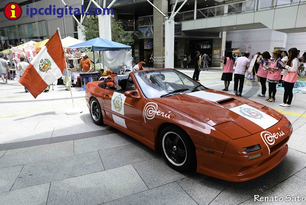 Un Mazda RX-7 Savanna Convertible con los colores de la bandera y el logotipo de la marca Perú fue la atracción en el Perú Matsuri que el pasado 24 de julio se realizó en el centro de la ciudad de Hamamatsu.