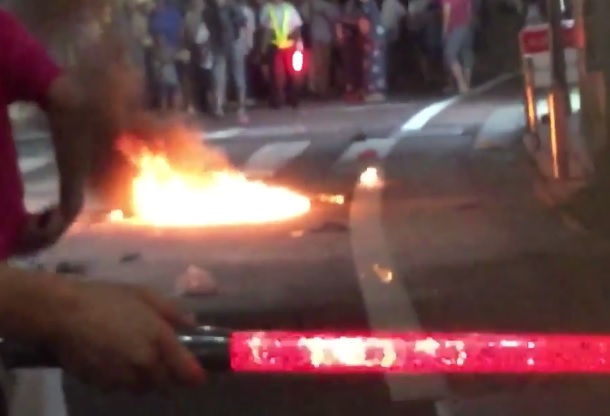 De acuerdo con la policía, un hombre de 68 años lanzó desde el tercer piso de su casa varias botellas que contenían un líquido inflamable, al parecer bombas molotov, ocasionando llamas de hasta 2 metros de altura.
