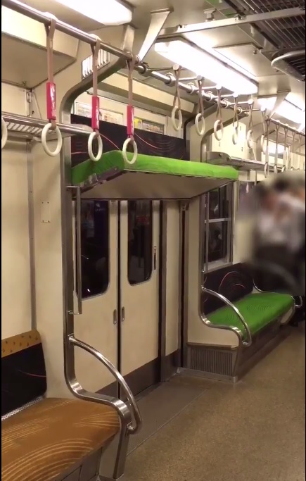 El operador ferroviario Keihan Railways, que cubre las prefecturas de Osaka, Kioto y Shiga, tiene en sus trenes de la serie 5000 un asiento extra que literalmente desciende del techo, tal como se aprecia en el video subido por el tuitero @kijitoti_NV.