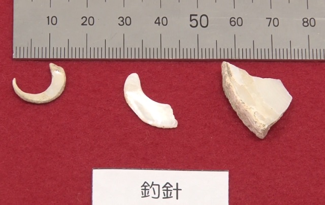 Los investigadores japoneses también han encontrado un anzuelo sin terminar con entre 13.000 y 23.000 años, así como fragmentos de gravilla que creen que se utilizó para afilarlo.