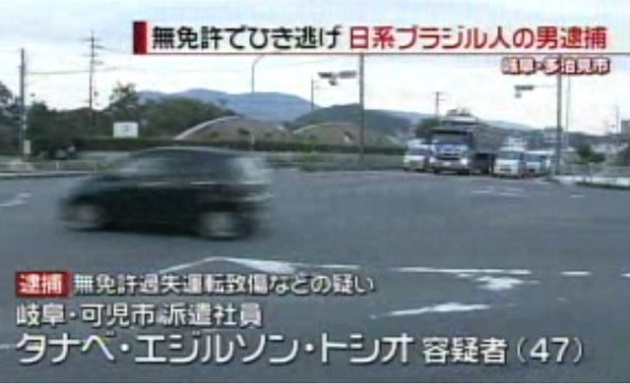 La policía de Gifu detuvo hoy al brasileño Edilson Toshio Tanabe, de 47 años, bajo la sospecha de negligencia al conducir un vehículo sin licencia y causar un accidente.