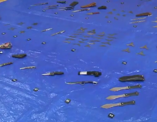 El hombre dijo que tenía las armas “por protección” y que estaba preocupado por problemas con su familia. Él mismo fabricó los shuriken. (International Press)