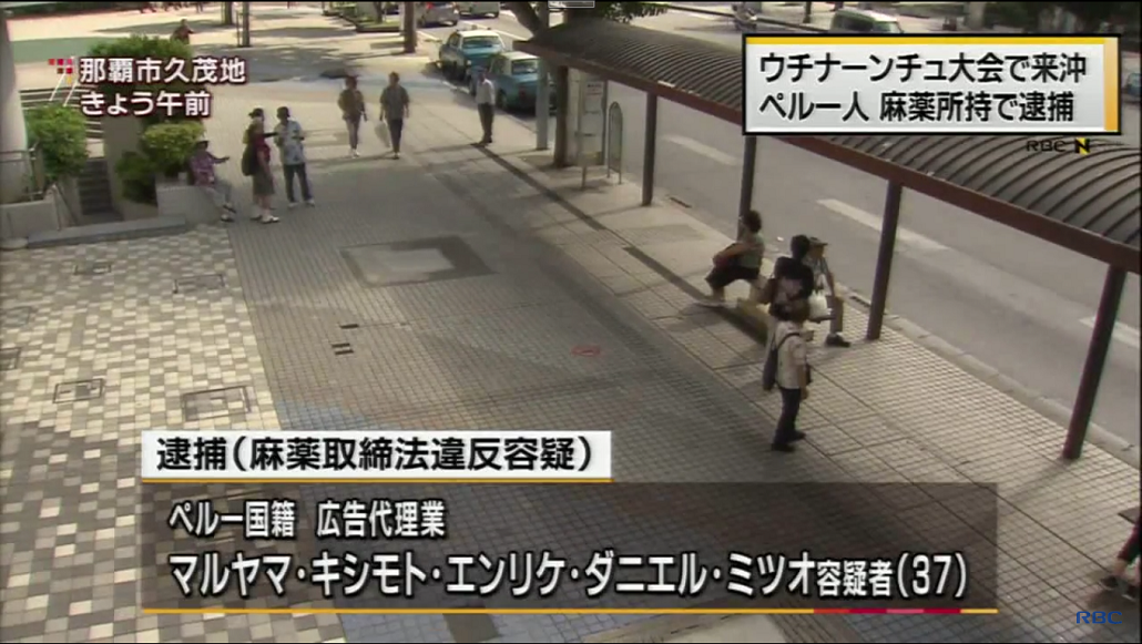El peruano de 37 años de edad, fue intervenido pasada la media noche del 26 de octubre en la zona de Kumoji, Naha shi, en posesión de una bolsa de papel que contenía anfetaminas.