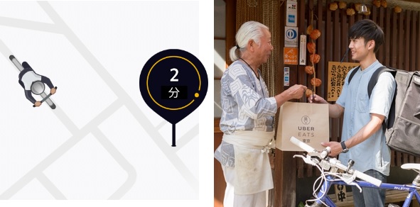 El autor del artículo cuenta que utilizó el servicio. Mientras iba en un tren con destino a la estación de Shibuya, pidió comida de un restaurante y acto seguido recibió un mensaje que decía que su pedido llegaría en 40 minutos.