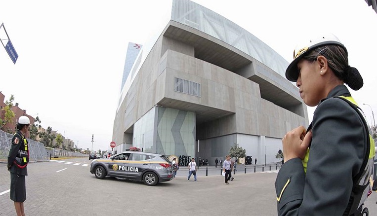 Un total de 11.500 agentes de la Policía Nacional del Perú (PNP) se encargaron de la protección de los invitados a la reunión, y su presencia fue evidente en casi todas las esquinas de la ciudad e incluso dentro de la zona de prensa, donde todos los periodistas asistentes tuvieron que acreditarse hace semanas.