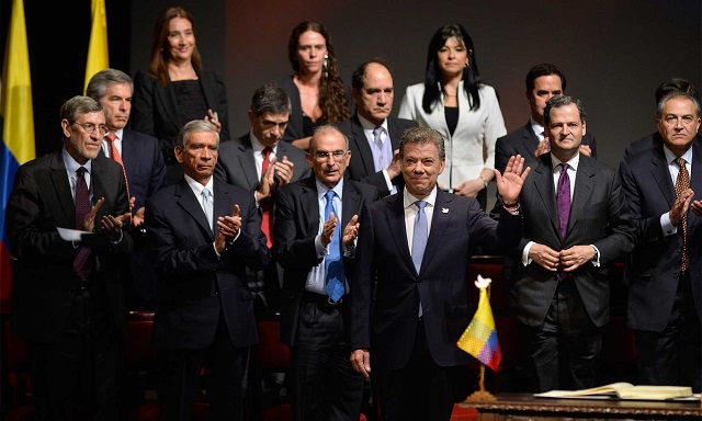Según Santos, este nuevo acuerdo «nos permite trabajar juntos, como nación, para recuperar las regiones más afectadas por el conflicto, para reconciliarnos, para aprovechar nuevas oportunidades de crecimiento y progreso».