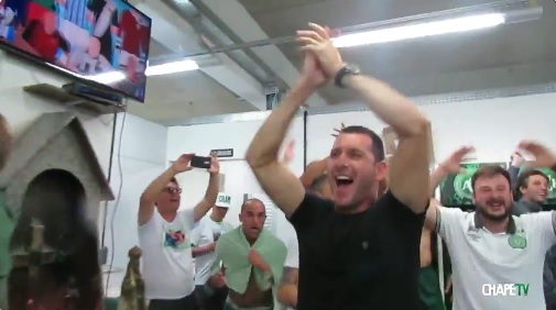 Los jugadores y el cuerpo técnico celebraron la hazaña en los vestuarios y hoy, en que el mundo llora la tragedia aérea en Colombia, el club brasileño subió a Twitter un video de los festejos. (International Press)