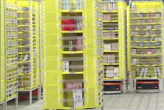 En el centro de distribución que Amazon Japón ha construido en la ciudad de Kawasaki, los trabajadores ya no necesitan caminar hasta las estanterías para tomar los productos que después son enviados a los clientes.