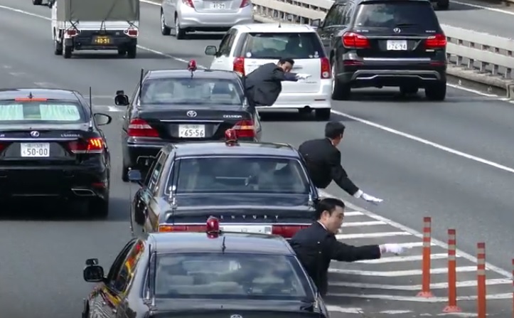 Japón no es la excepción, pero llama la atención cómo actúa el séquito del primer ministro Shinzo Abe, tal como se aprecia en un video subido a YouTube (goo.gl/cD4G25) y grabado en una autopista, y que reproduce el sitio RocketNews24.