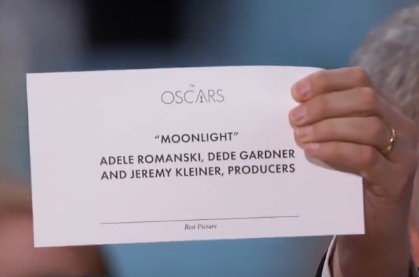 Beatty abrió el sobre con el nombre del vencedor y lanzó un gesto de extrañeza a su alrededor. Sin embargo, nadie de la Academia se pronunció, así que el veterano actor prosiguió y le pasó el sobre a Dunaway, que leyó el nombre de «La La Land» que aparecía junto al de Emma Stone, el premio entregado justo antes.