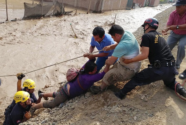 La emergencia climática sigue igualmente golpeando otras regiones del país, como La Libertad en el norte, donde los rescatistas encontraron hoy los cadáveres de tres personas arrastradas por un deslizamiento en la provincia de Otuzco. (EFE)