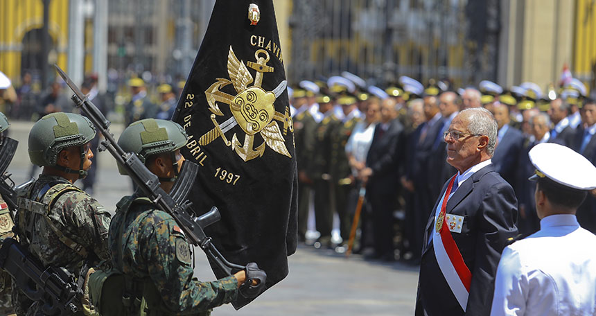 En la ceremonia, Kuczynski colocó la condecoración de la Orden Militar de Ayacucho, en el grado de Gran Cruz, al estandarte de la operación Chavín de Huántar, denominada así en alusión a los túneles prehispánicos construidos en el sitio arqueológico del mismo nombre, en la región andina de Áncash, en el norte del país.