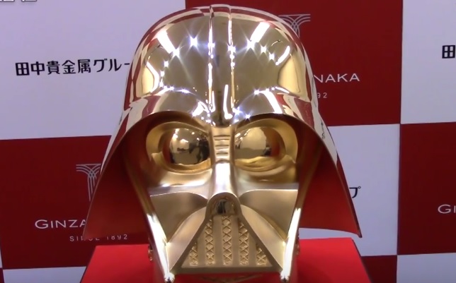 Una joyería japonesa pondrá a la venta por 154 millones de yenes (1,3 millones de euros) una réplica en oro del casco del personaje cinematográfico Darth Vader para conmemorar el 40º aniversario del estreno de la primera entrega de «La guerra de las galaxias» (Star Wars).