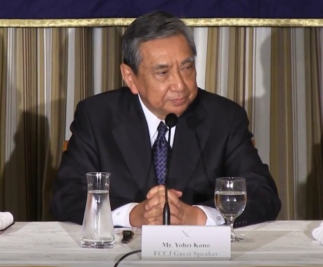 Yohei Kono, expresidente del gobernante Partido Liberal Demócrata (PLD), está en contra de la intención del primer ministro de Japón, Shinzo Abe, de modificar el artículo 9 de la Constitución pacifista.