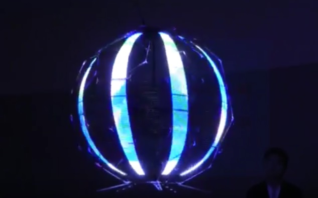El dispositivo, de un diámetro máximo de 88 centímetros, consiste en un pequeño dron de cinco hélices instalado en el centro de una estructura esférica constituida por ochos varillas curvas LED que al girar a gran velocidad sobre un eje horizontal forman las imágenes y crean el efecto de una esfera sólida.